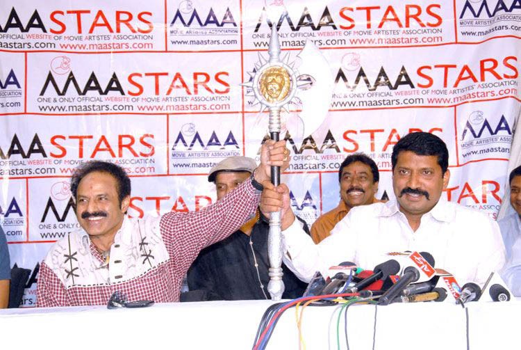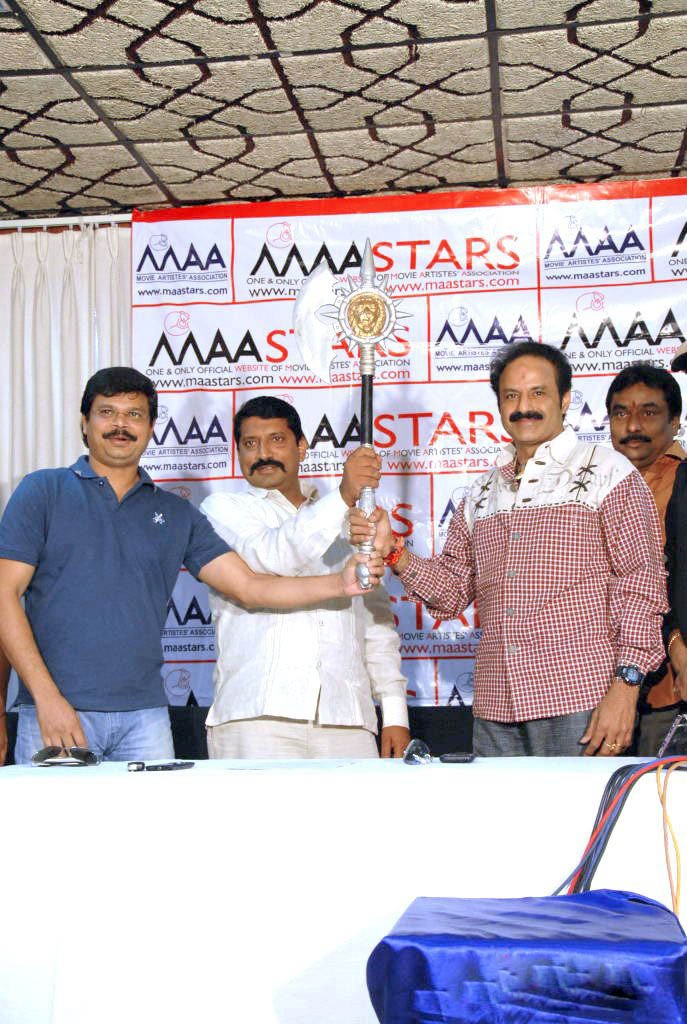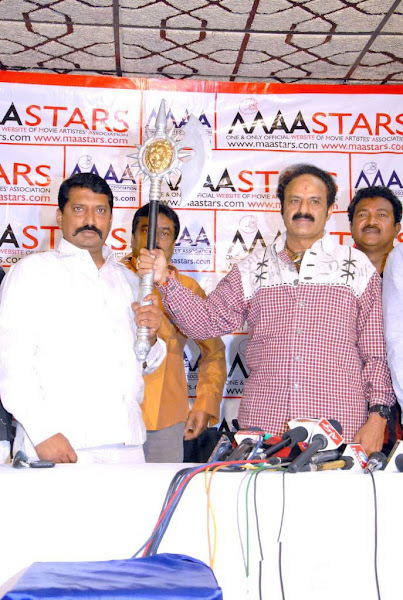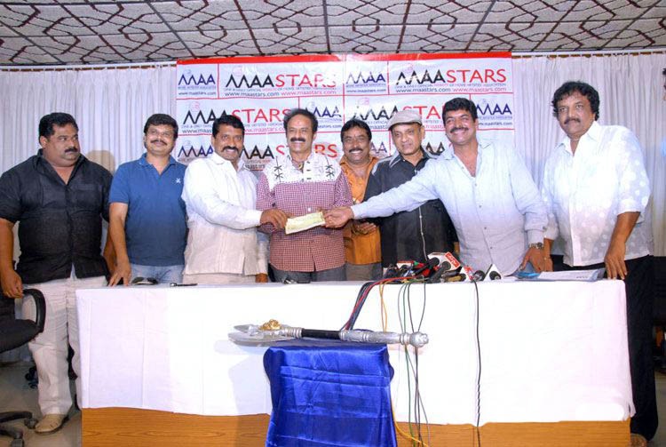 Venkat Garikapati and Jitender Atluri have won the bidding of 'Simha Axe'. The two NRIs from New Jersey bid the axe for huge amount of Rs. 5 Lakhs. The bidders received the axe from Balakrishna at a press meet organized by Movie Artistes'Association.The charity auction was conducted by MAA. The amount will be used for the welfare of the poor artistes of Telugu film industry.Actor Balakrishna, producer Paruchuri Prasad, Boyapati Sreenu, A.V.S, Shiva Krishna, MAA CEO Sekhar Sunkara and others were present at the event.